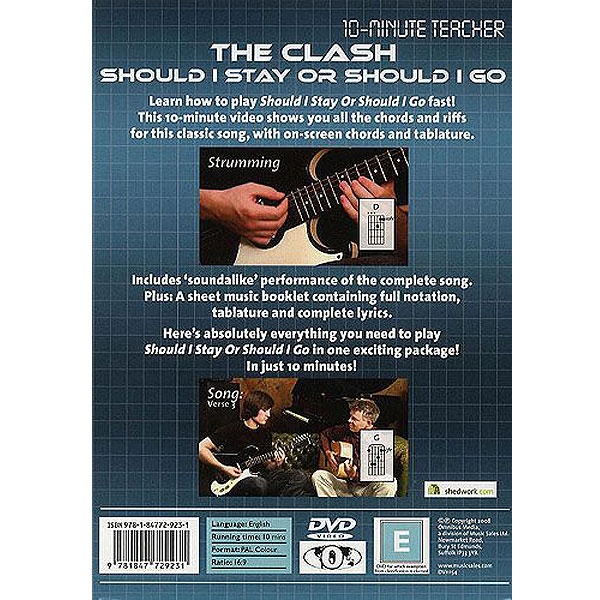 Her er altså alt du behøver, i en spændende pakke, for at på 10 minutter lære dig spille Should I Stay or Should I Go!