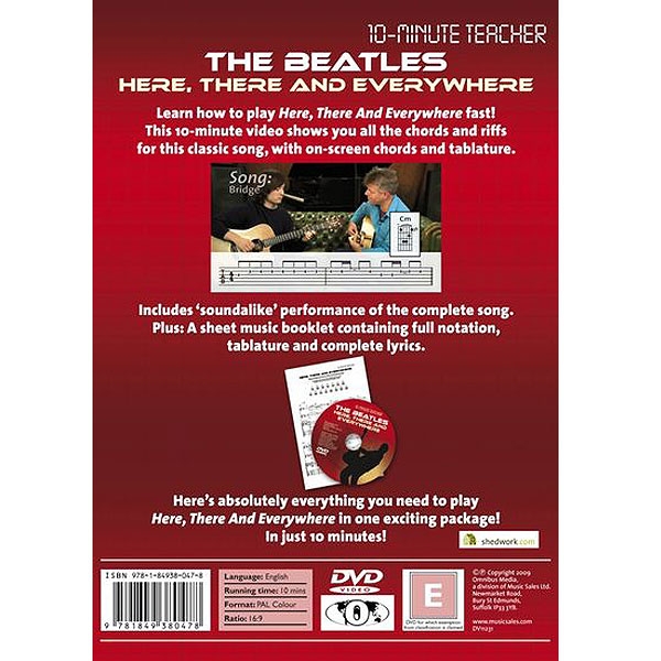 Lær dig hurtigt spille Here, There & Everywhere! Denne 10 minutters video viser alle akkorder og riffs der spilles i denne klassiske rocksang, med akkorder og tabulatur på skærmen.