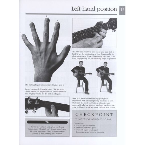 48 siders kursus i alt hvad du behøver at vide fra første gang du tager din guitar i hånden. Incl. en "spil med" CD
