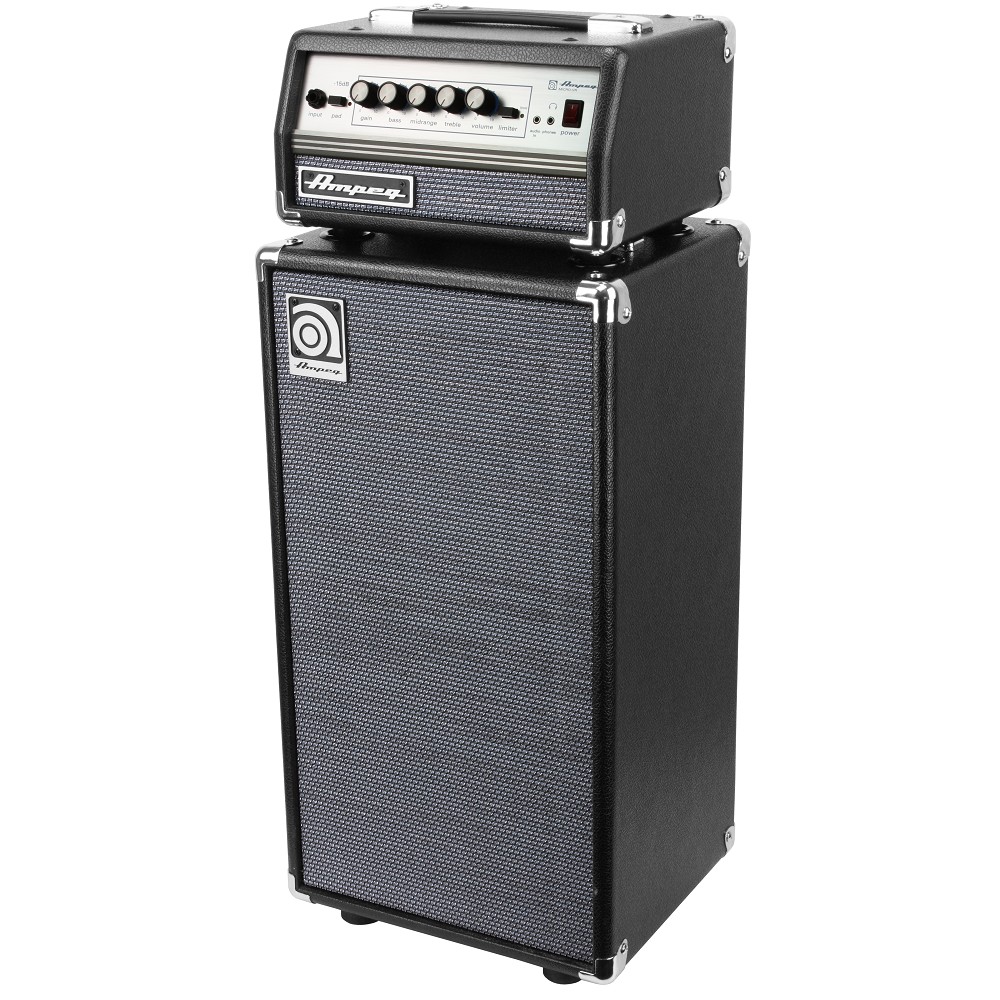 Ampeg Micro VR Stack BasHead / SVT210 Kabinet Lad dig ikke narre at det diminutive udseende, Ampeg Micro-VR''en er et kompakt powerhouse i stand til at pumpe 200 watts af ægte Round Sound™ ind i live- og optagelsessituationer. Dette bærbare, kraftfulde solid-state hoved med traditionelt Ampeg-udseende er både behagelig for øjnene og ørene. Ampeg-lyden er der leveres er af ubestridelig topkvalitet. Ampeg SVT210AV''en er det bærbare alternativ til en full-size SVT cab. Ideel i sensitive optagelsessituationer hvor SVT810-AV''ens lyd kan være for høj og i livesituationer hvor den kan være fysisk for stor. SVT210AV''en er designet med Ampeg''s legendariske Infinite Baffle™ system som leverer maximal speaker-effektivitet og ægte Ampeg-lyd. MICRO-VR Hoved. Preamp : Solid-State. Power Amp : MOSFET. RMS Power-Output : 200watts @ 4ohms. Tone-Kontrol : 3-Band. Mid Tone-kontrol : Ultra Mid. Balanced Line-Out : YES. Dimensioner (W x H x D inches) : 12 x 5.5 x 10. SVT210AV Kabinet. LF Driver : 2 x 10 Eminence Speakers. RMS Krafthåndtering : 200 Watts @ 8ohms. Frekvensrespons (-3dB) : 58Hz-5kHz. Brugbar lavfrekvens : (-10dB): 40Hz. Nominel Impedans : 1 x 8 ohms (Mono). Dimensioner (W x H x D inches) : 13 x 24 x 11. Håndteringsvægt : 11,75 kg.