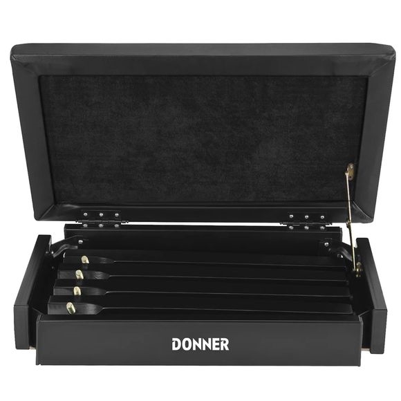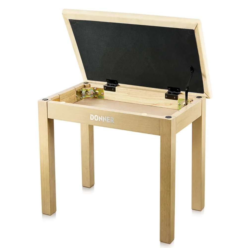 Donner Bench klaverbænk kombinerer funktion og komfort i et tidløst design, der passer perfekt til både hjemmet og undervisningslokalet. Den er fremstillet i robust træ og udstyret med en slidstærk, polstret siddeflade, som sikrer en behagelig oplevelse – selv ved længere tids spil. Under sædet findes et praktisk opbevaringsrum til opbevaring af noder, metronomer og andet nødvendigt tilbehør.