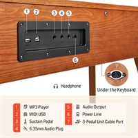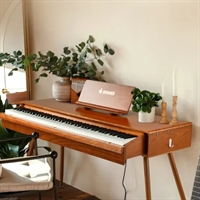 - Eksklusivt Design: Klaveret har en stilfuld træfinish, der kombinerer et moderne og klassisk look, hvilket gør det til et elegant møbel i ethvert hjem eller studie.