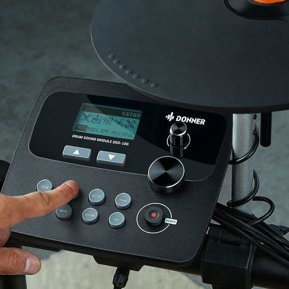 Donner DED-100 anvender mesh-hovedteknologi for at levere en realistisk rebound og dynamisk respons, hvilket simulerer følelsen af at spille på et akustisk trommesæt.