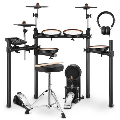 Trommesættet er designet med en solid og justerbar ramme, der sikrer stabilitet under spil og gør det nemt at tilpasse til forskellige spillestillinger. DED-100 har også omfattende tilslutningsmuligheder, herunder USB/MIDI-forbindelse til integration med musiksoftware, en hovedtelefonudgang til lydløs øvning og en aux-indgang til at spille med til dine yndlingssange. |