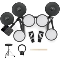 DED-70 sættet består af fire 6” trommepads med mesh skind og 3 bækkenpads af gummi samt en hihat pedal og en stortrommepedal. Hihat pedalen lader dig vælge mellem lukket, halvåben og åben hihat lyd, når du slår på hihat gummipad’en, mens stortrommepedalen frembringer en stortrommelyd, blot du træder på den.