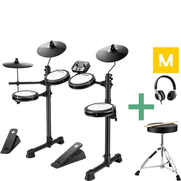 Sættet leveres inkl. trommestol, hovedtelefoner og trommestikker, hvilket gør Donner DED-80 til et oplagt valg som første el-trommesæt – uden behov for ekstra tilkøb.