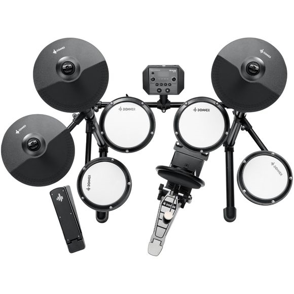 Donner DED-80 er et kompakt og støjsvagt el-trommesæt, udviklet til begyndere, øvelokaler og hjemmebrug, hvor fleksibilitet og brugervenlighed er i fokus. Sættet leveres som en komplet pakke, så du kan komme i gang med det samme – uanset om du er ny trommeslager, øver derhjemme eller underviser.