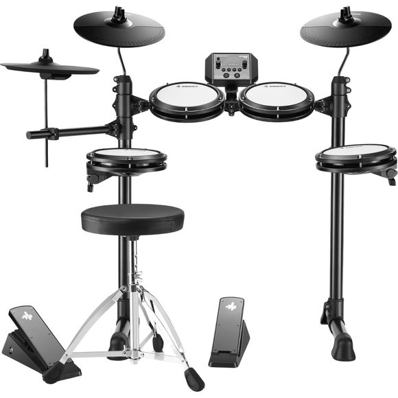 Trommesættet er udstyret med et solidt rack og gummipads, der giver en kontrolleret og jævn spillefornemmelse. Den medfølgende lydmodul indeholder et bredt udvalg af trommelyde og færdige kits, som gør det nemt at udforske forskellige musikgenrer – fra rock og pop til øvetracks og undervisning.