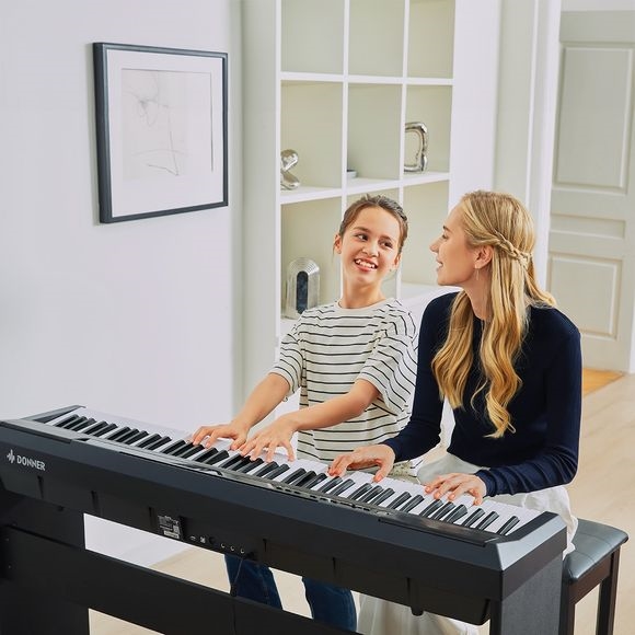 Donner DEP-10 kommer med sustainpedal, metronom, hovedtelefonudgang og USB-MIDI, så det let kan forbindes med computere og musiksoftware. Det kompakte design gør det let at placere i stuen, på værelset eller i øvelokalet, uden at fylde unødigt.