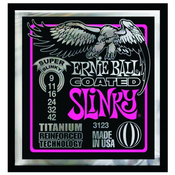 Ernie Ball Super Slinky EB-3123 RPS Titanium el-guitarstrenge med såkaldt enamel-coating.