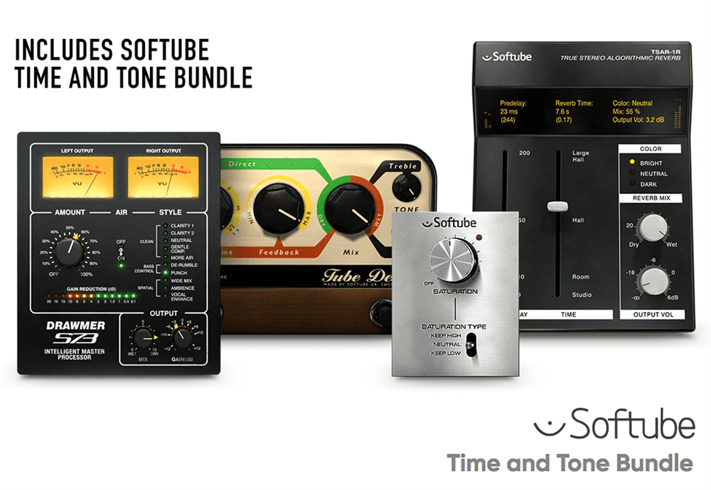 Softube Time and Tone Bundle: three of Softube's world class reverb, delay and distortion plug-ins, and an an easy-to-use mastering tool.