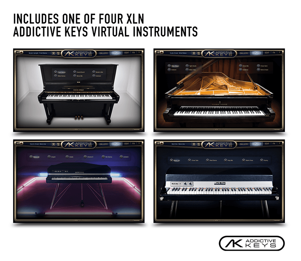 XLN Audio Addictive Keys: Access one of four virtual keyboards when you register your first piece of Focusrite or Novation hardware.