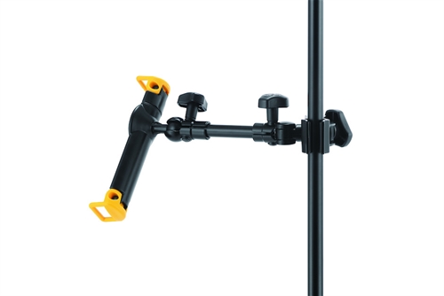 Accommodates 7”-10.1” tablets. Fully adjustable within designated position. Applicable to all microphone stands and desks within the following dimensions: 15.8-30mm (0.62-1.18”) round tube 18-25.4mm (0.7-1”) square tube 10-25mm (0.39-0.98”) thickness Weight: 0,5kg Folded size: 350mm x 80mm x 100mm