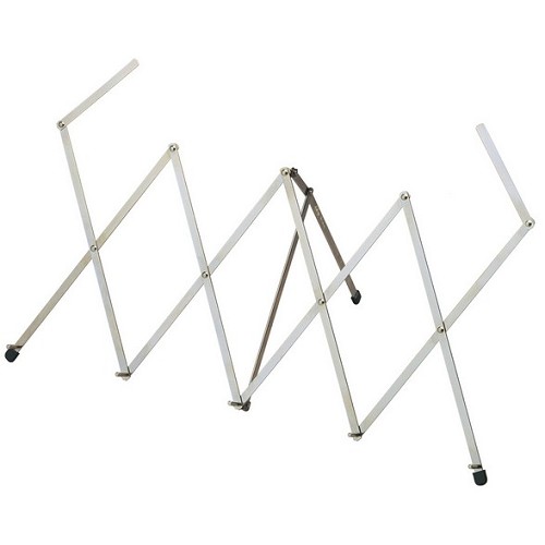 Nodestativ, 12400-11 Udfoldeligt nodestativ med nodeholder, placeres på bord. Materiale: stål Nodeholder størrelse: 500 x 200 mm Størrelse sammenklappet: 260 x 47 x 37 mm Farve: nikkel farvet Vægt: 0.26 kg