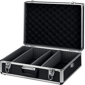 Bygget over alumininumsrammer og forsynet med bærehåndtag. Kufferten kan låses.