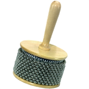 Club Salsa Cabasa i medium størrelse 11cm Ø. Udført i træ og forsynet med kæder med metalkugler. Længde 16,5cm .