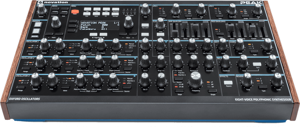 Peak lyder varm og rig med beskidte, bidende overdrive. Det er en polyfonisk synthesizer med otte stemmer på skrivebordet med tre nye Oxford oscillatorer til hver stemme. Synthen har et resonant multi-mode analogt filter for hver stemme og tre forvrængningspunkter i en analog signalkæde.