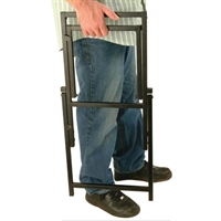 Firkantet bund til at skabe stabilitet. Gummifødder så den ikke glider eller vibrerer. Stativet kan let foldes sammen, og der er en lille spilt, der holder den samlet.