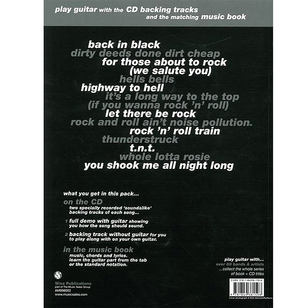 Pakken består af 2 CD'er og en akkordbog som giver dig muligheden, at spille 13 af AC/DC's bedste hits med komplette baggrunds lydspor.