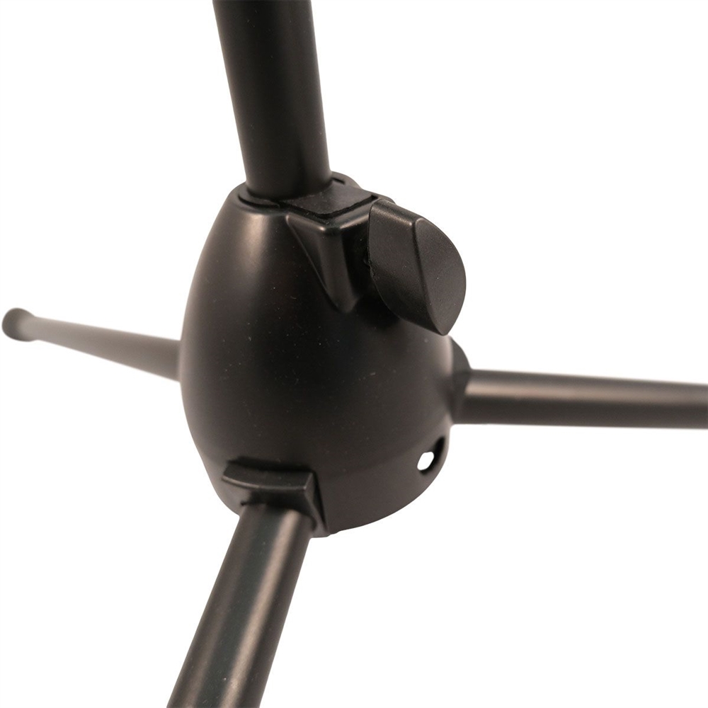Standard mikrofonstativ med tre ben. Justerbart i højden fra 87 cm op til 167 cm. Længde på boom 51 cm.
