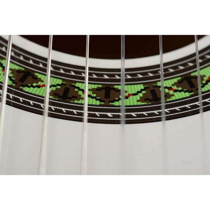 Fuldstørrelse Spansk/klassisk guitar, som ligger godt i hænderne. Guitaren har en varm og rund klang.