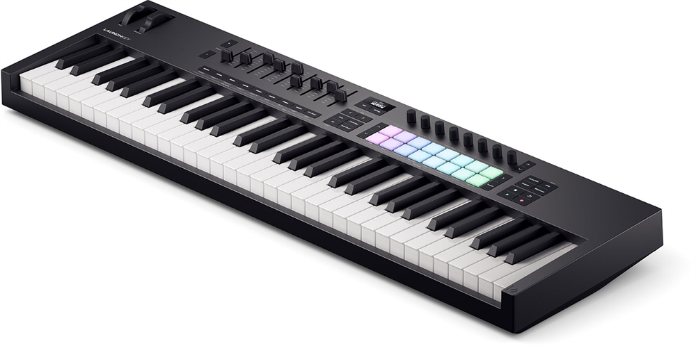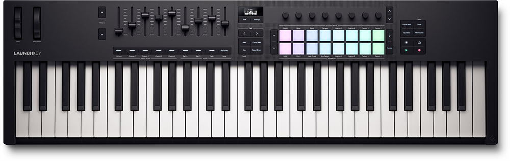 Novation Launchkey 61 MK4 er et professionelt MIDI-keyboard controller designet til producenter og live-performere, der ønsker optimal kontrol og kreativ frihed. Med 61 semi-vægtede tangenter får du fuld spillekomfort, mens 16 RGB-belyste pads, 9 fadere og 8 rotary encodere giver dig hands-on styring af trommer, clips, mix og effekter.